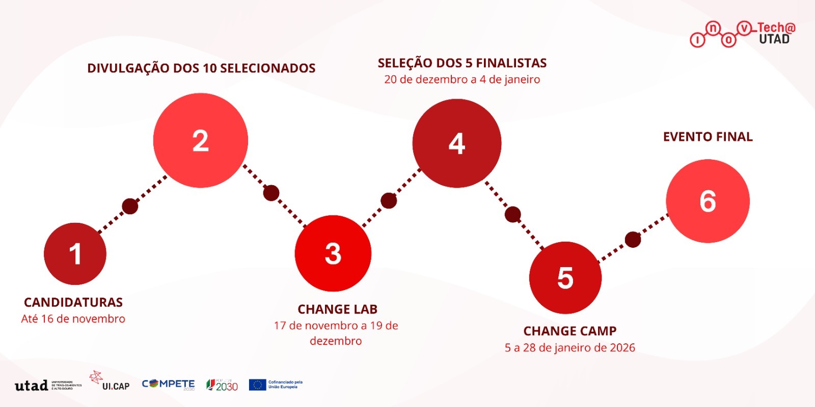 As 5 ideias finalistas terão apoio especializado para o desenvolvimento da ideia e preparação para o evento final, onde serão divulgadas as equipas vencedoras do INOV_Tech@UTAD 2025.